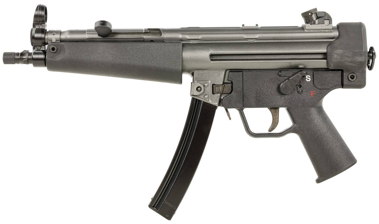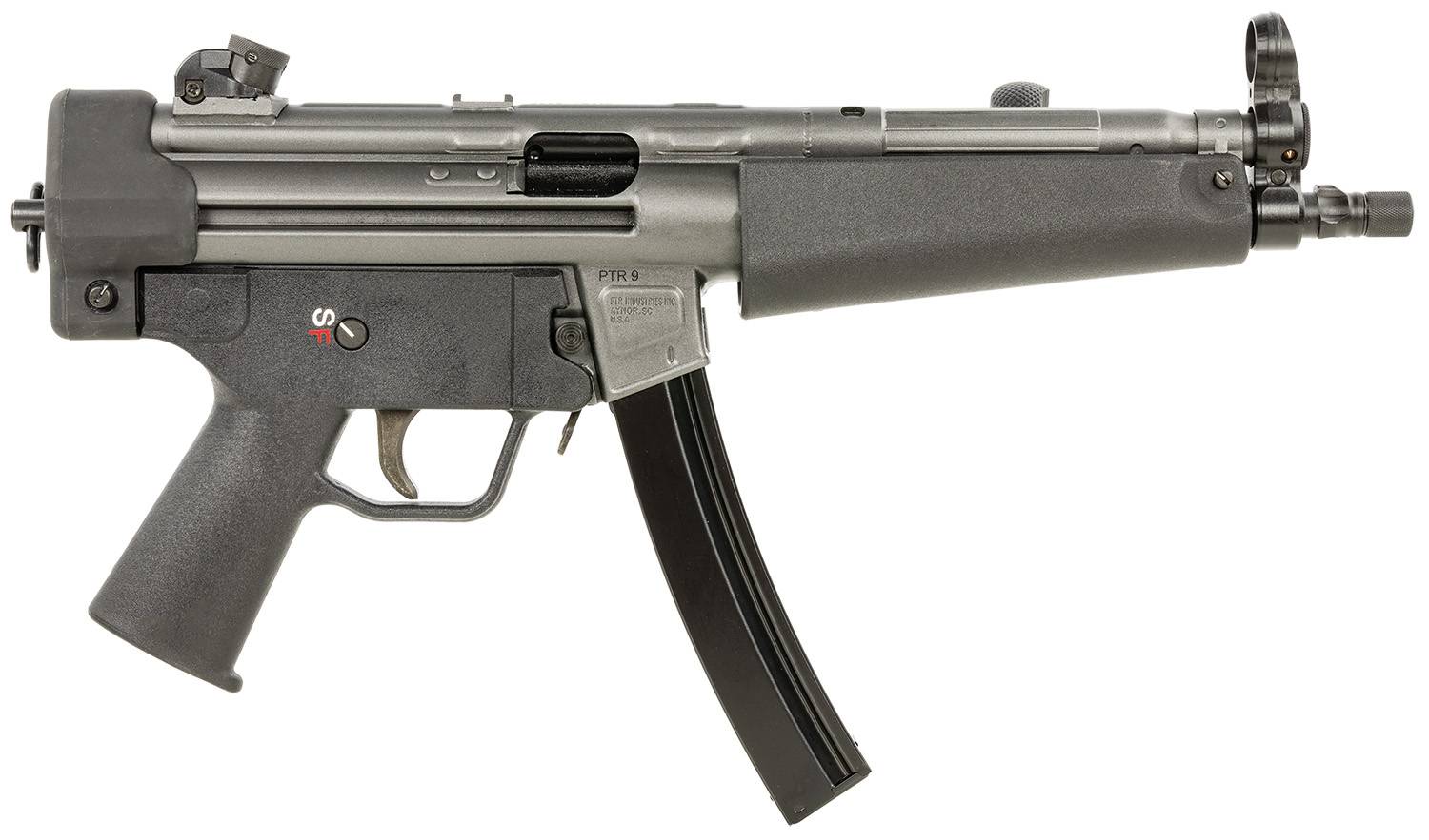PTR 9CT Classic features a plastic classic handguard; accepts original claw mount; black polymer end cap with swivel adapter; paddle style and push button magazine releases; roller-delayed blowback; NFA-registered, full auto sear pack ready; 9-10lb trigger pull; the carrier is nitride treated & tungsten weighted w/full auto bolt carrier. Includes two magazines, single point bungee sling and trigger cable lock.