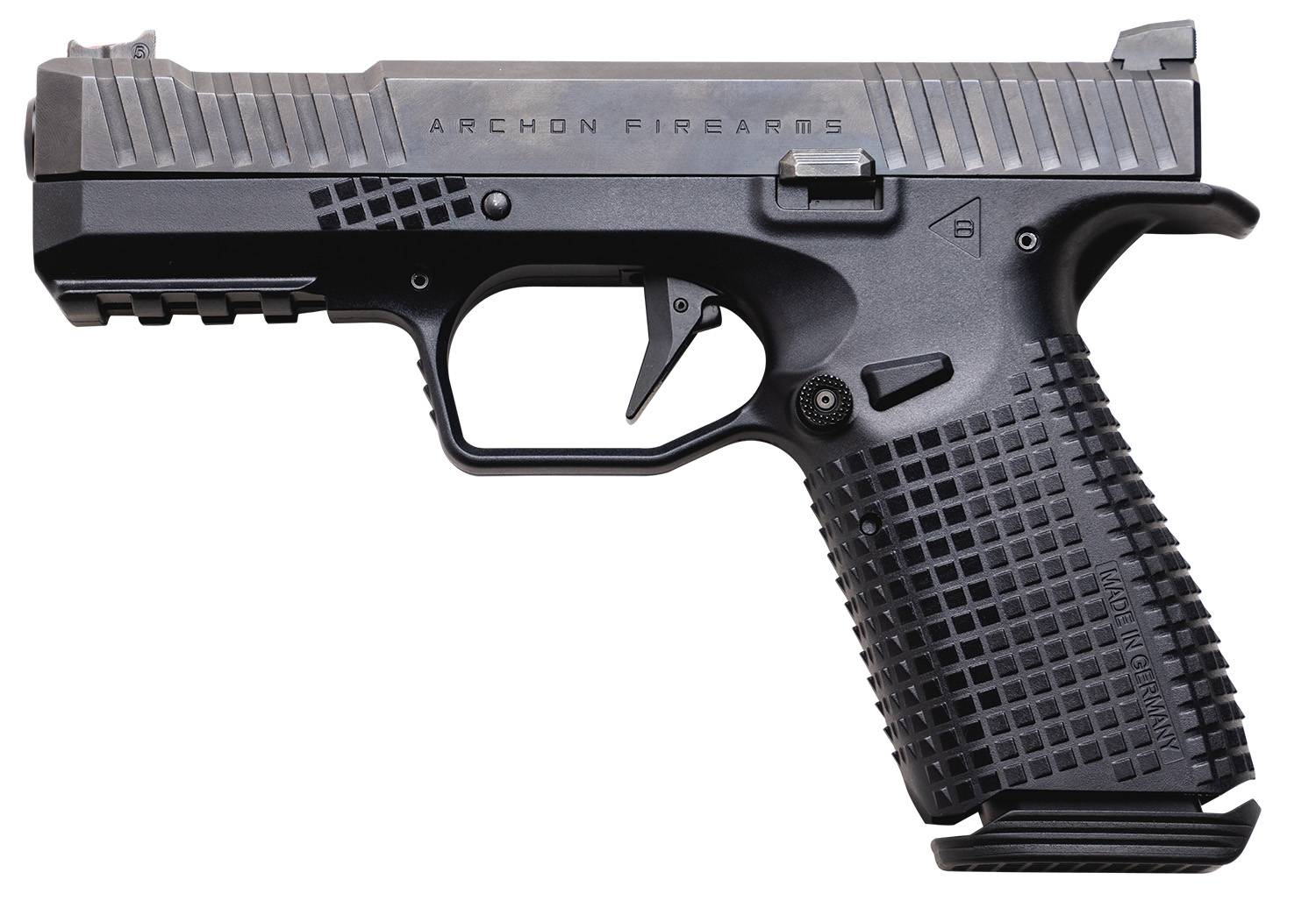 The Archon Type B, Gen 1 a compact, semi-automatic handgun. Featuring an ergonomic grip that stands out in its ability to mitigate unwanted motion when firing. Its intricate design, characterized by complex beveled squares, grants shooters an optimized hold, enhancing accuracy and maintaining impeccable control during use; AF-Speedlock technology, this system incorporates a low bore axis along with a patented breech locking mechanism. The barrel remains straight during the slide cycle, allowing the entire slide of the firearm to nest deeper into the grip. This synergistic design has two significant outcomes: a dramatic reduction in muzzle rise and a tangible decrease in felt recoil. Includes two magazines.