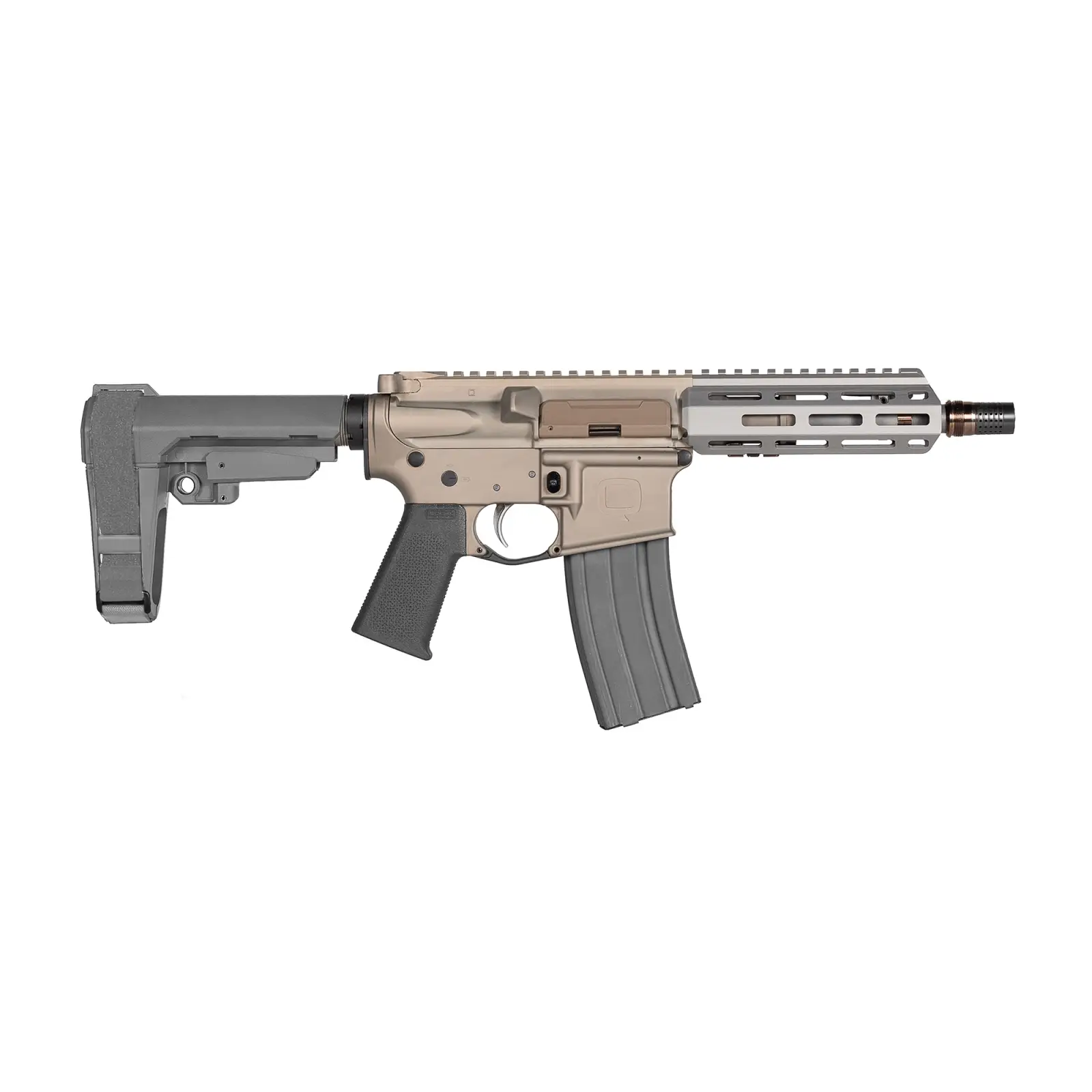 The Sugar Weasel features a 7-inch barrel and clear anodized receiver set, giving it a sleek, modern appearance that also maintains durability. While it skips some of the more expensive proprietary Honey Badger components, it retains many of the most important features—like the fast-adjustable pistol brace, two-stage flat trigger, and Q’s Cherry Bomb muzzle device compatibility. This combination allows for smooth shooting, reliable cycling, and the ability to easily integrate a suppressor for subsonic use.