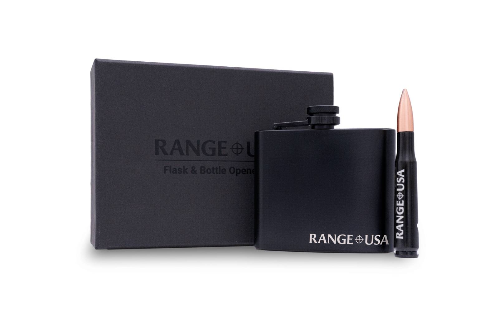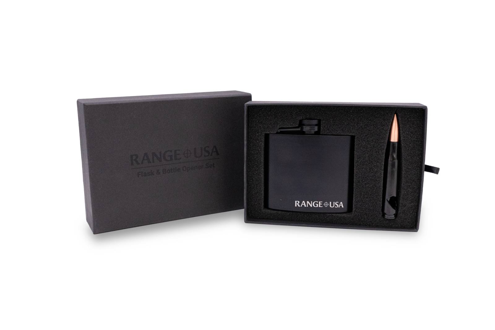 This sleek box set includes a matte black stainless steel flask and matching .30cal bullet bottle opener. Both items are laser etched and packaged together in a matte black gift box making it a perfect gift for any firearms enthusiast!
