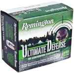 Remington's line of Personal Defense ammunition is engineered to help you stop threats when everything depends on it. Ultimate Defense Full-Sized Handgun ammo uses a Golden Saber BJHP bullet which expands and penetrates for massive knockdown power. From bullets specially designed for controlled expansion and optimal energy transfer, to waterproofing and powders treated to reduce muzzle flash, its reliable stopping power stands ready for when you need it most.