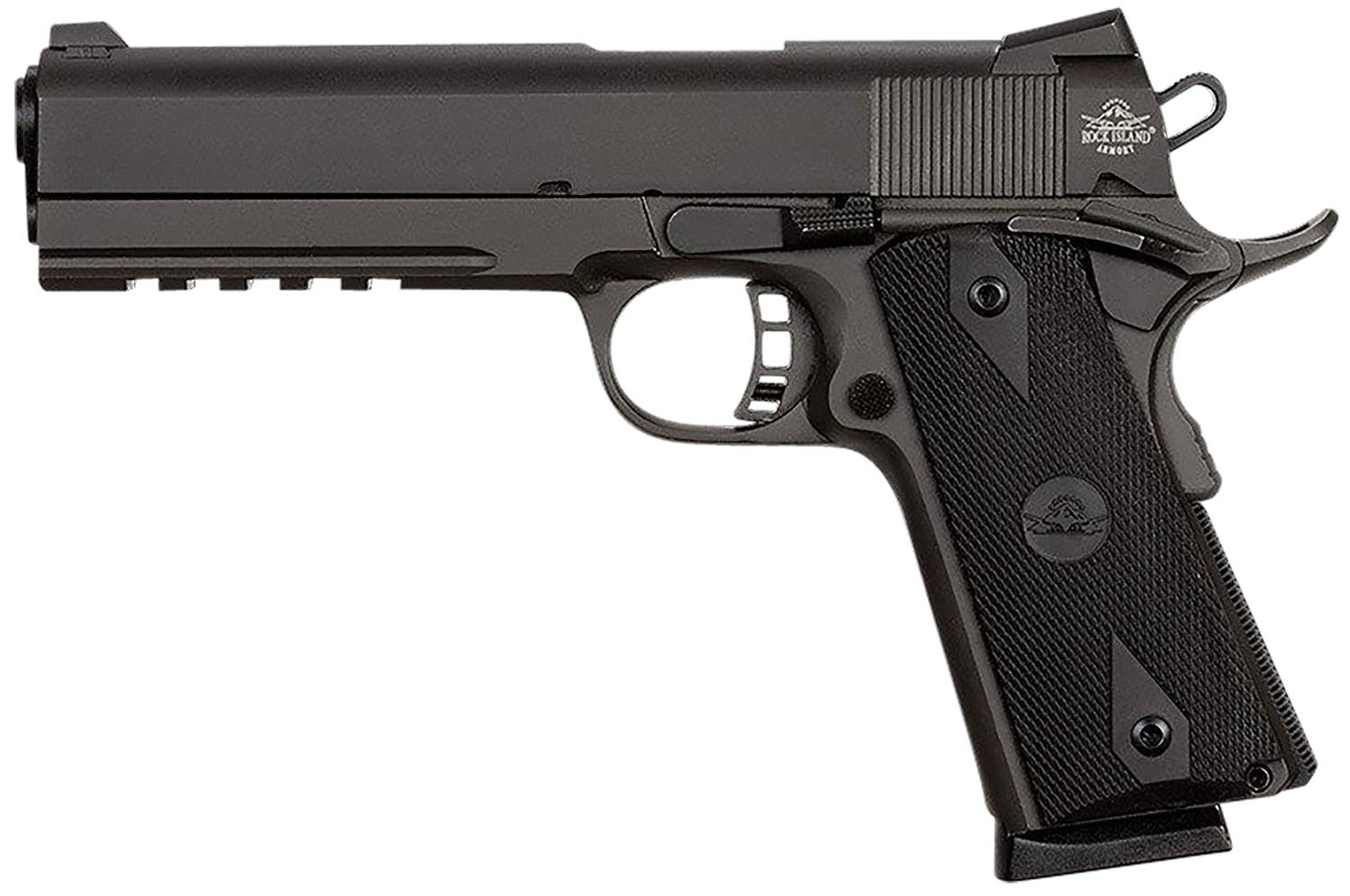 The TAC series is Rock Island Armory's most versatile, all-around 1911 and includes precise engineering elements built with every tactical advantage and choice you could want. All TAC series 1911s include a full-length under-picatinny tactical rail to allow any choice of custom attachment. Skeletonized hammers and triggers with over travel stop provide adjustments important to anyone looking for a fully capable 1911. The TAC Standard full size introduces a full tactical rail. It is built with a 5" button rifled barrel supported by a full length guide rod and full dust cover. Includes a low-profile angled rear sight along with skeletonized hammer and trigger with adjustable over travel stop. The TAC Standard is finished with a tough parkerzied matte coating and has rubber grips. True to all Rock Island 1911s, the TAC Standard comes with a crisp, factory 4- to 6-pound trigger to give you a great experience right out of the box.
