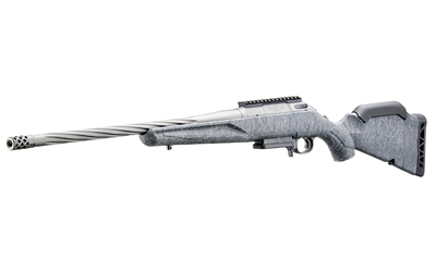The Ruger American's professionally applied Cerakote coating on the barrel, muzzle brake, receiver and bolt handle results in a durable, easy-to-maintain finish. The stock provides excellent grip without being too sharp or abrasive. A soft rubber recoil pad features a large radius on the heel for easy shouldering and improved geometry that progressively collapses to reduce felt recoil. Removing the installed spacer allows for length of pull to be adjusted from 13.75" to 12". Installed low comb improves sight alignment when using magnified optics but can be removed when utilizing low-mounted sights. The medium contour barrel features deep spiral flutes that reduce weight at the muzzle end of the barrel to improve balance without sacrificing stiffness or accuracy. Threaded barrel with factory installed radial port muzzle brake is cold hammer-forged, resulting in ultra-precise rifling that provides exceptional accuracy and longevity. Intuitive three-position tang safety locks the bolt, preventing inadvertent bolt opening while allowing the rifle to be loaded with the safety engaged. Ruger Marksman Adjustable trigger offers a crisp release with a pull weight that is user-adjustable between 3 and 5 pounds. Patented Power Bedding integral bedding block system positively locates the receiver and free-floats the barrel for outstanding accuracy. The one-piece bolt is CNC machined from stainless steel for smooth operation and the familiar three-lug design with 70 degree throw provides ample scope clearance. Picatinny scope base. Includes one magazine; steel sling swivel studs.