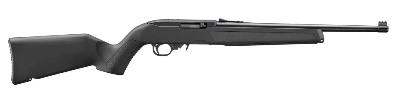 Ruger 10/22, Semi-automatic, 22LR, 16.12" Cold Hammer-forged Barrel, Satin Finish, Black, Polymer Stock, Adjustable Fiber Optic Rear Sight, Fiber Optic Front Sight, Manual Safety, 10 Round Rotary Magazine 32012