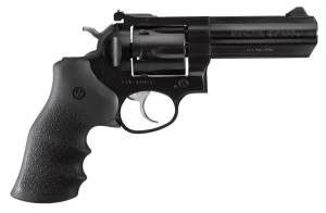 Ruger's GP100 revolver features a cylinder that is locked into the frame at the front, rear and bottom for more positive alignment and dependable operation over the lifetime of the firearm. Its patented transfer bar mechanism provides an unparalleled measure of security, while the integrated sub-assemblies allows for easy maintenance and assembly. The grip frame design easily accommodates a wide variety of custom grips. This Standard model has a blued 4.2" barrel, frame, and cylinder and has a black Hogue Monogrip and a red ramp front sight with an adjustable rear.
