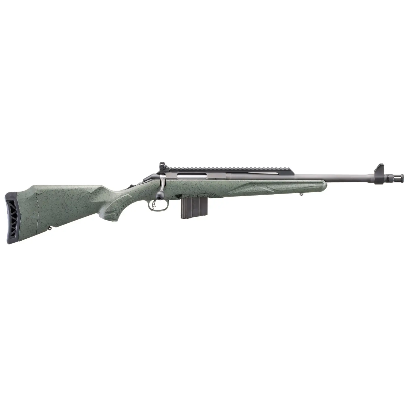 The Generation II Scout models feature a scout length scope base for mounting intermediate eye relief scopes and optics while also including elevation and windage adjustable iron sights.