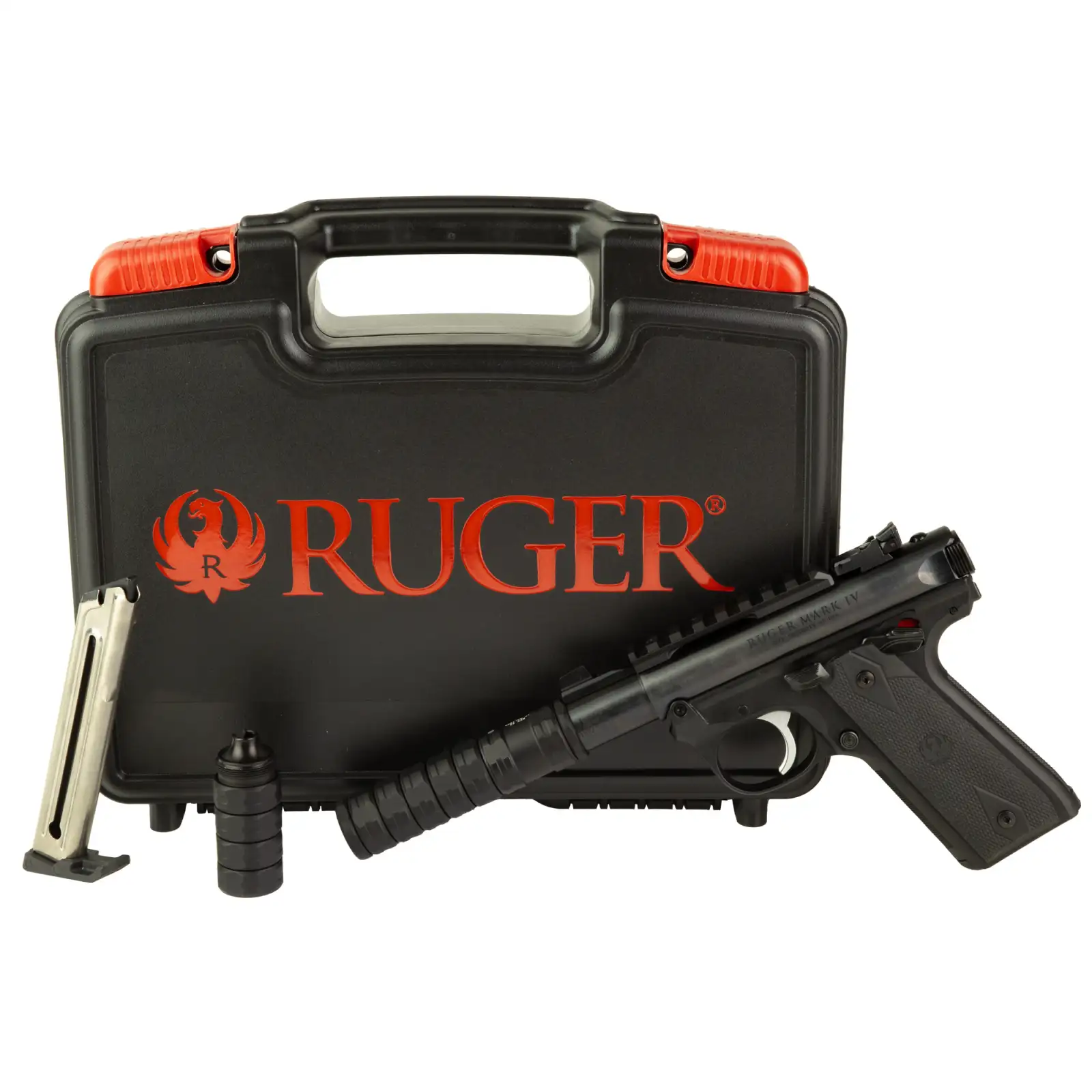 Ruger Mark IV 22/45 Pygmy Shark, Semi-automatic, 22LR, 3.1" Threaded Barrel, 1/2x28 Thread Pitch, Black, Checkered Grips, 10 Rounds, 2 Magazines, Includes JK 105 VERSAX 22 Suppressor 40190