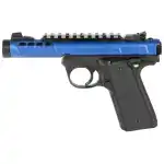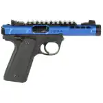Ruger, Mark IV, 22/45 Lite, Single Action, Semi-automatic, Polymer Frame Pistol, 22LR, 4.4" Barrel, Threaded 1/2X28, Anodized Finish, Blue, Black Cerakote Barrel and Trigger, Checkered Rubber Grips, Adjustable Rear Sight, Ambidextrous Safety, 10 Rounds, 2 Magazines