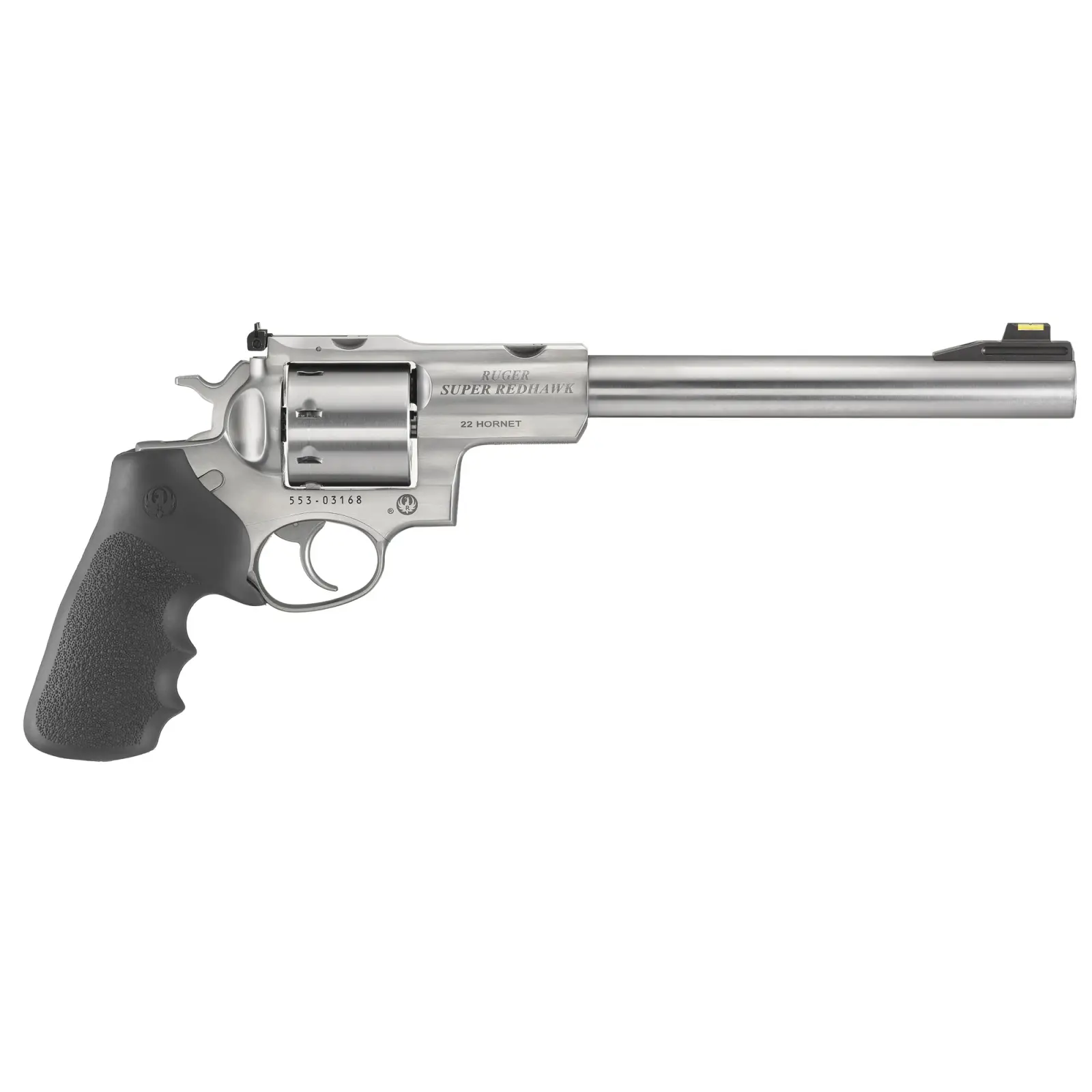 Ruger, Super Redhawk Standard, Double/Single Action, Revolver, 22 Hornet, 9.5" Barrel, Stainless Steel, Satin Finish, Silver, Hogue Tamer Monogrip Grip, Adjustable Rear Sight & HiViz Green Front Sight, 8 Rounds