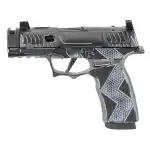 Sig Sauer, P365X Komodo Anime, Striker Fired, Semi-automatic, 9MM, 3.1" Zaffiri Threadless Compensated Barrel, Komodo Aluminum Grip Module, Custom Black Cerakote Finish by Shark Coast Tactical, Fixed Sights, Optic Ready, 17 Rounds, 2 Magazines