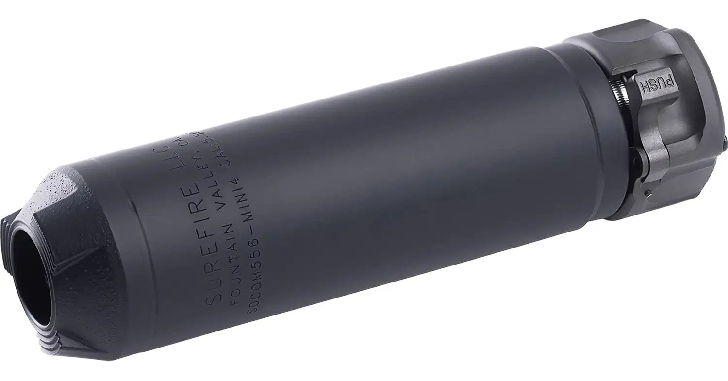 Surefire SOCOM RC4 Mini Rifle Suppressor, 223 Remington/5.56 NATO, 3D-Printed Inconel Construction, 14.5oz, 1.5" Diameter, 5.5" Length, Low Back Pressure, End Mount Fast-Attach, Cerakote Finish, Black SOCOM556-MINI4-BK