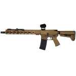 Introducing the Sunrise AR by Shark Coast Tactical: Where style meets precision. This mil spec masterpiece boasts a custom Tri-Tone FDE Cerakote finish for durability and style, while the Vortex Crossfire Red Dot ensures pinpoint accuracy in low-light conditions. Illuminate your path with the 625 Lumen ProTac RailMount Light and enjoy enhanced control and handling with a matching Magpul stock and grip. Each rifle includes a double rifle carry case and an official Shark Coast patch. Upgrade your arsenal and redefine your missions with the Sunrise AR.
