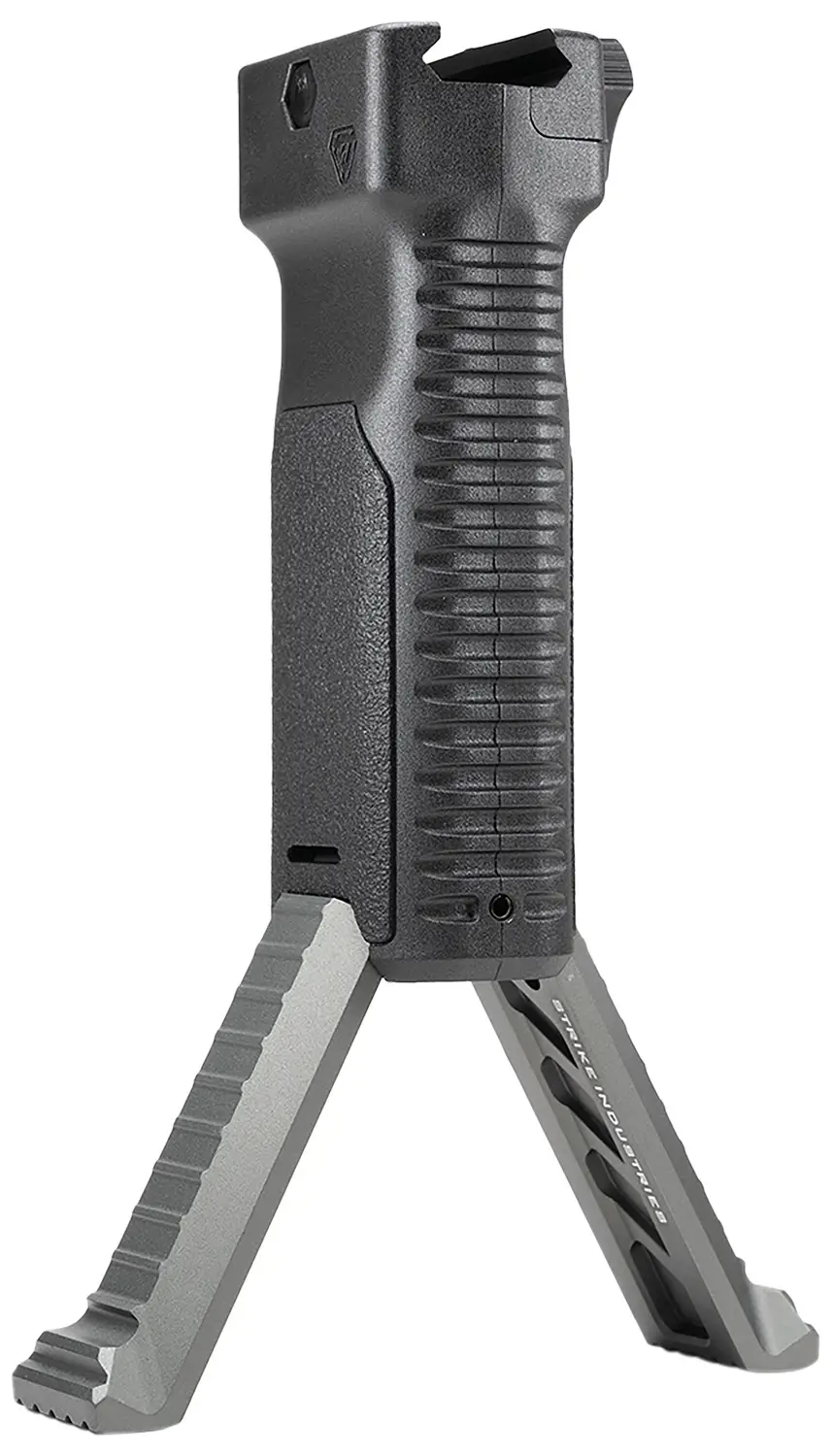 The Strike Bipod Grip with Aluminum Legs provides rifles with unmatched versatility and efficiency, ensuring a solid grip while on the move and a stable platform for prone shooting. This accessory combines durability and strength with a lightweight design, featuring a polymer grip and machined 6061-T6 aluminum legs. The Quick Detach clamp with a 3-arm knob makes it effortless to attach and remove, while the simple pull mechanism enables rapid deployment of the aluminum bipod legs, facilitating seamless transitions between standing and prone positions.