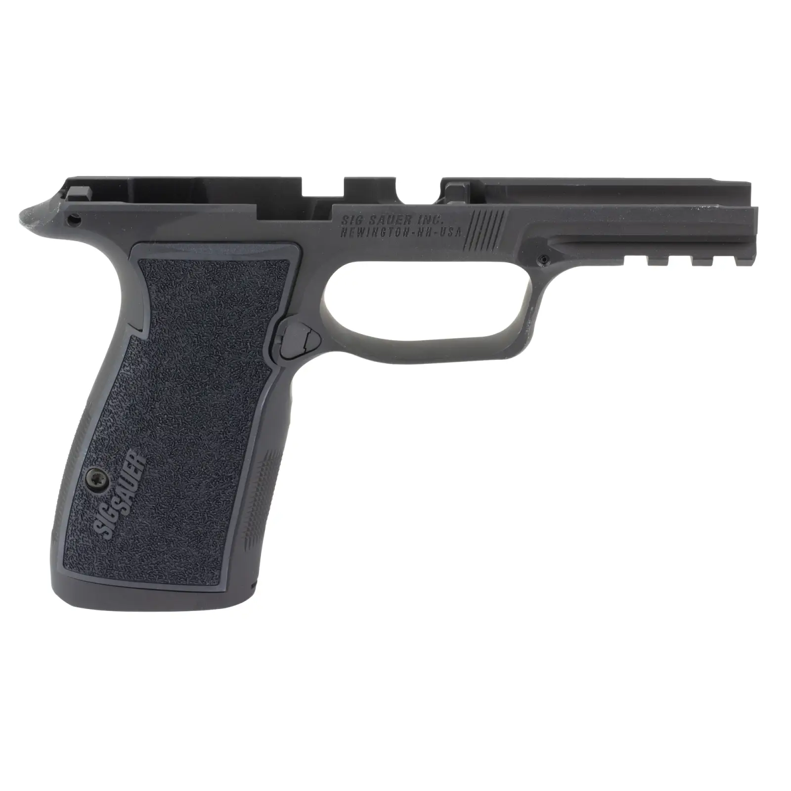 Upgrade your P365 grip module with this AXG grip module, now in black. This grip module features an all-metal aluminum alloy frame and interchangeable polymer grip panels. Easily swap out these grip panels with other P365 AXG grip panels. Mount your favorite light to the true 1913 accessory rail. Compatible with the 17-round P365-AXG LEGION, P365-XMACRO magazines, and the 21-round P365 magazines. Compatible with all P365 FCUs (Fire Control Unit) except manual safety versions.