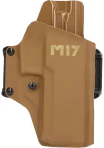 This exclusive P320-M17 premium outside-the-waistband (OWB) BlackPoint Tactical 2.0 holster has been designed as a hip carry holster that offers excellent comfort and durability. Designed with flexible molded polymer belt loops to allow the holster to conform better to the shape of your body for better comfort and holster longevity. Configured to be used with or without a slide-mounted reflex sight installed. Features a tensioning screw below the trigger guard so the user may adjust the pistol retention tension as they see fit. A low-profile sweat shield lays comfortably against the user to protect both the firearm and the user. A neutral cant offers fast access and easy reholstering.