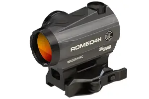 Sig's Romeo4 Compact Red dot is fast, accurate and its target acquisition is ideal. The unlimited eye-relief allows you to acquire the aiming point and target, and MOTAC (Motion Activated Illumination) powers up when it senses motion and powers down when it does not providing optimum operational safety and enhanced battery life. Included are clear flip-open covers. This Romeo4H model has a graphite gray finish and a 2 MOA Red Dot Ballistic Circle Dot reticle.