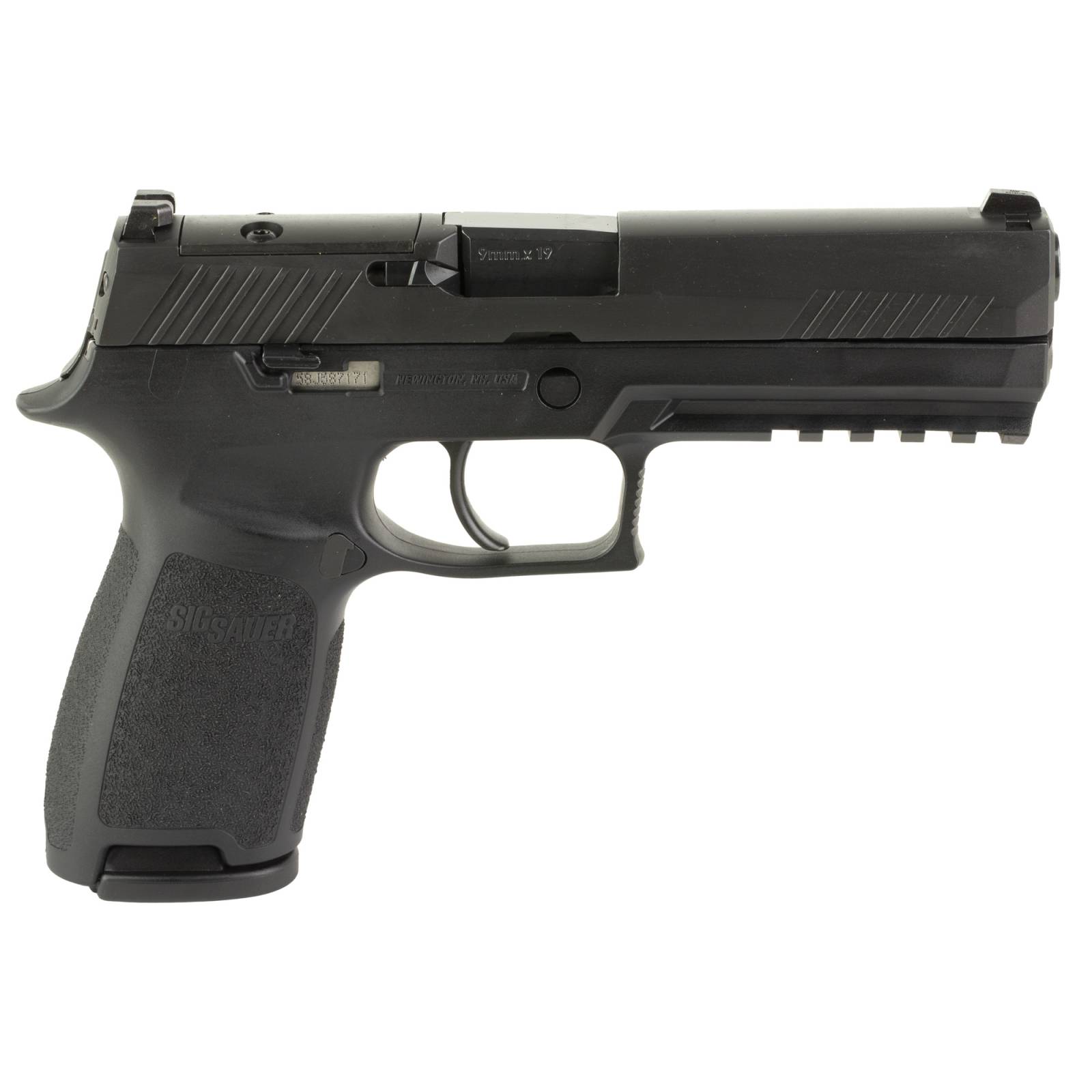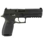 The P320 Full-Size offers a smooth, crisp trigger to make any shooter more accurate, an intuitive, 3-point takedown and unmatched modularity to fit any shooter and any situation. Its full-size frame is ideal for target shooting, home defense and any scenario where shootability and sighted accuracy are of the highest priority. This modular, striker-fired pistol features a full-size grip, full length slide, and SIGLite font and rear night sights. Chambered in 9mm Lugar. Safety features include a striker safety and disconnect safety.