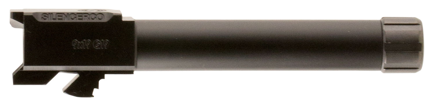 The Glock 19 compatible threaded barrel from Silencer Co is a 4.01 inch replacement barrel made from 416R stainless steel. This barrel features a black finish along with a 1/2" x 28 RH thread pattern.