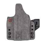 The Incog X is compatible with any Red Dot Sight (RDS) capable of being installed on the firearm manufacturer's slide behind the ejection port (including mounting options using the firearm manufacturer's adapter plates). They tested dozens of popular RDS models including larger optics like the Trijicon SRO. The Trijicon SRO requires a slight repositioning of the upper flat clip to eliminate minor interference, but works flawlessly after adjustment. The INCOG-X inside the waistband holster for Glock 17/19. Boltaron construction provides form fitting passive retention. Suede exterior adds extra friction for secure IWB wear. Adjustable clip positioning allows for ride-height adjustment.