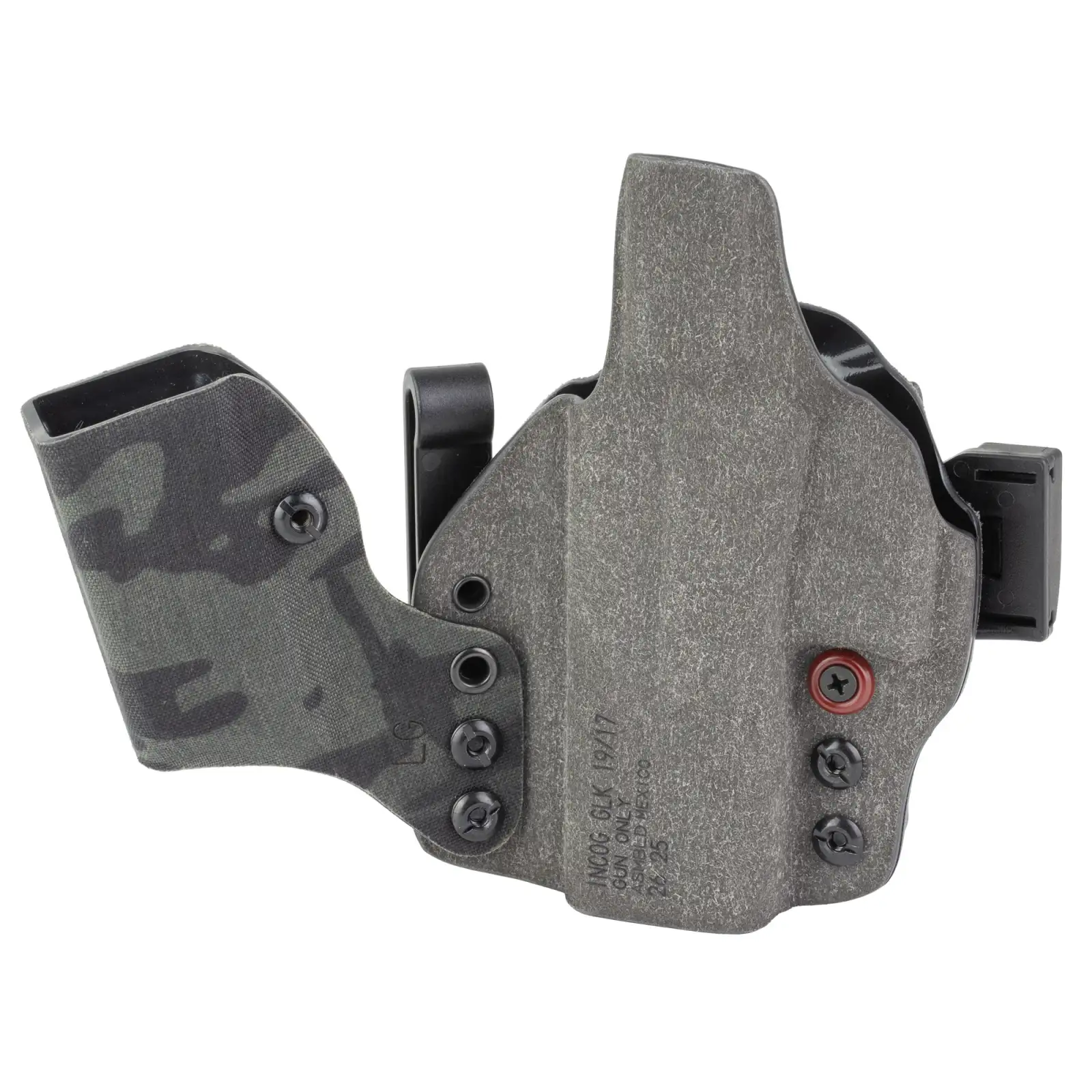 Safariland INCOG-X, Joint Collaboration with Haley Strategic, Inside the Waistband Holster, Fits Glock 17/19, Integrated Magazine Caddy, Microfiber Suede Wrapped Boltaron Construction, Multicam Black, Right Hand 1341344
