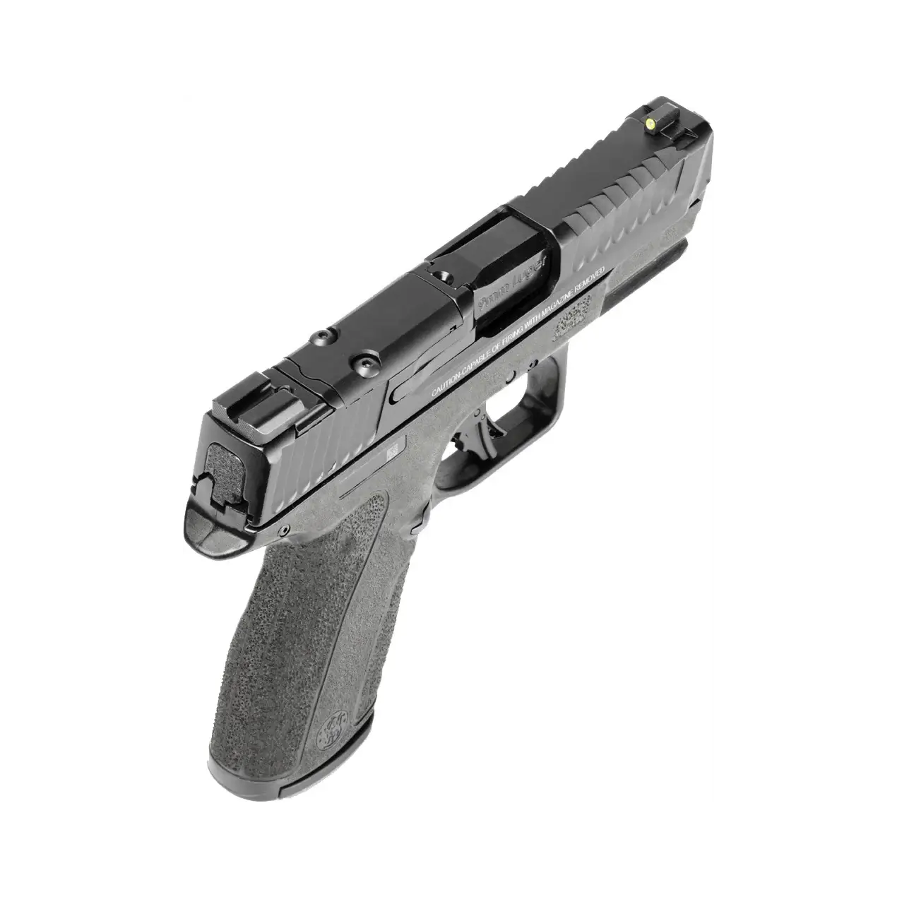 Designed to enhance the Shield series from Smith & Wesson, the M&P Shield X focuses on versatility. Featuring aggressive front and rear serrations for racking, a reversible magazine catch, and a longer grip to maximize capacity, the Shield X ensures adaptability for any scenario. Improved ergonomics make for a better fit and feel in the hand for added comfort during extended range sessions. Customize to your needs with a flat-plane RMSc/K optic cut and front rail. Comfortable, reliable, and confident - the Shield X is the ideal choice for shooters of any skill level.