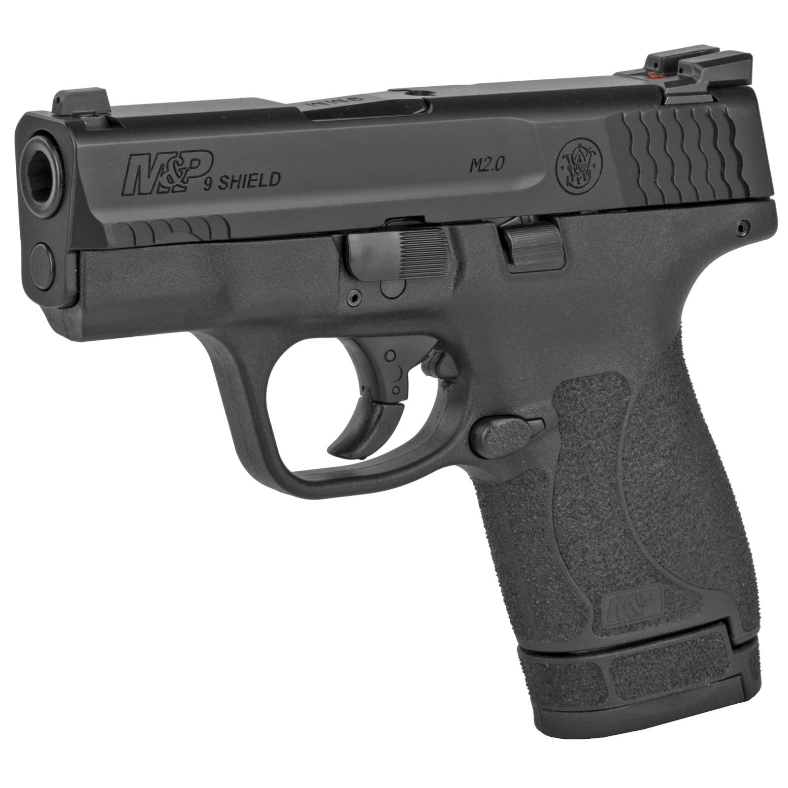 S&W M&P pistols have a reinforced polymer chassis, superior ergonomics, and proven safety features. In designing the M&P, S&W considered the needs of military and law enforcement from every conceivable angle, so the M&P is the standard in reliability. M&P's patented take-down lever and sear deactivation systems allow for disassembly without pulling the trigger. The M&P Shield is easy to conceal, offering professional grade features with simple operation and reliable performance day or night. It puts the power and features of full sized M&P pistols into a slim, lightweight pistol the size of your hand. M&P M2.0 models feature aggressive grip texture for enhanced control, M&P M2.0 crisp trigger with lighter trigger pull, and a tactile and audible trigger reset. The stainless steel barrel and slide have an Armornite corrosion-resistant finish. Includes one 7rd magazine and two 8rd extended grip magazines.