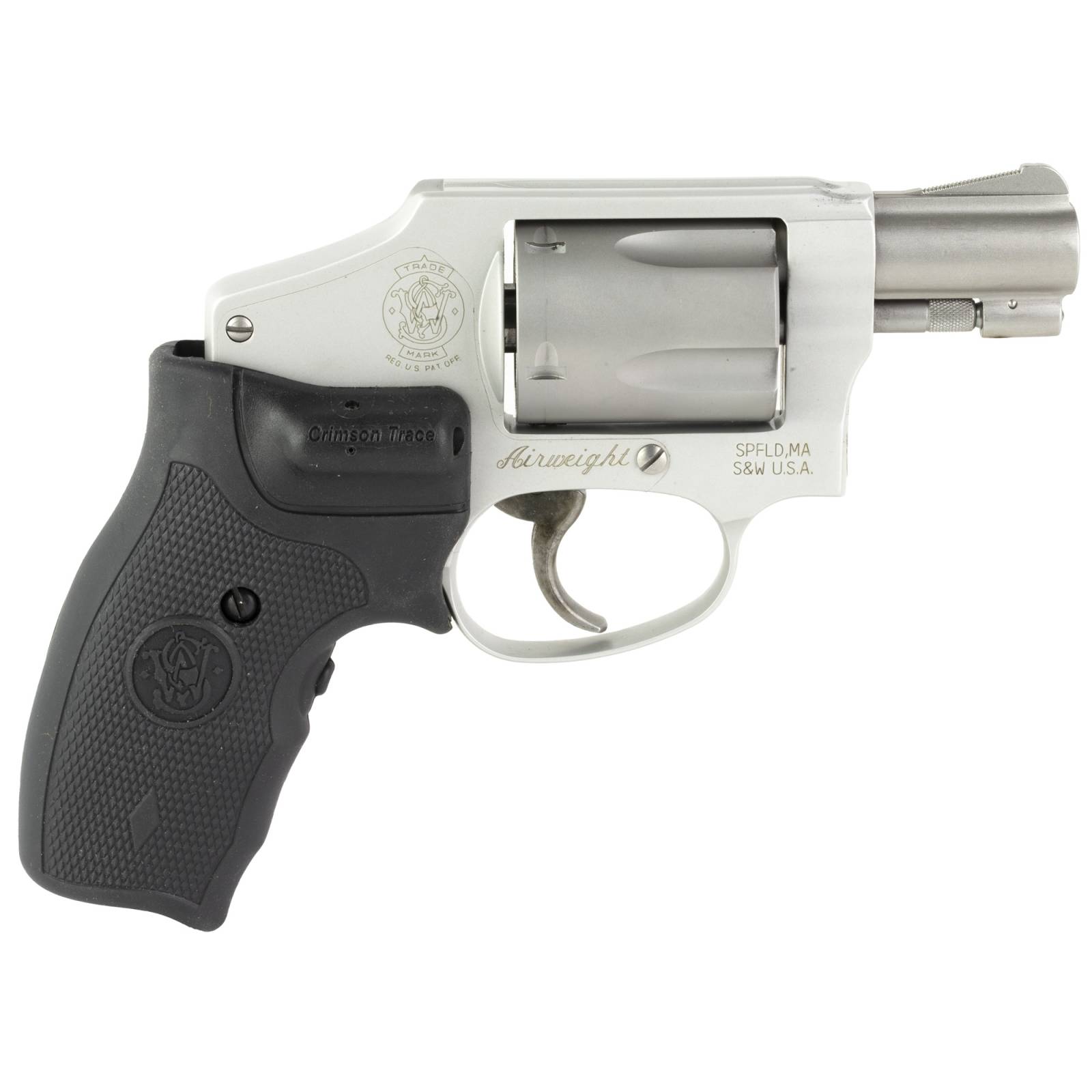 Smith & Wesson, Model 642, Double Action Only, Metal Frame Revolver, J-Frame, 38 Special +P, 1.88" Barrel, Alloy, Matte Finish, Silver, Fixed Sights, 5 Rounds, Crimson Trace Laser Grips, No Internal Lock