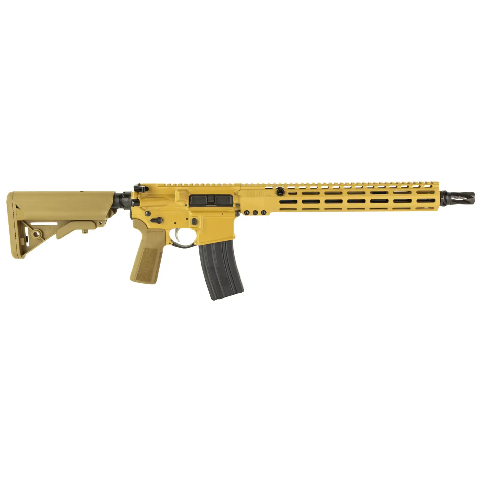 Sons of Liberty Gun Works, SCALPER, Semi-automatic Rifle, AR, 556NATO/223 Remington, 13.9" Pinned (16" OAL) Cold Hammer Forged Barrel with HUXWRX XL Muzzle Device, Mid Length Gas System, Cerakote Finish, RAL 8000, Vltor A5 Buffer System, Liberty Fighting Trigger, Liberty Charging Handle, Coyote B5 Furniture, 13.75" L89 Rail, Ambidextrous Safety, 30 Rounds, 1 Magazine