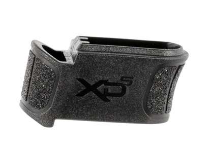 Magazine sleeve slides down over the top of the magazine and fills the gap between the bottom of the grip frame and the base of the magazine. This mag sleeve features a black finish.