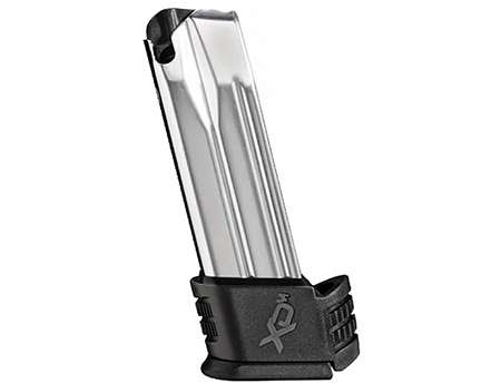 Replacement magazines for the XD(M) series of pistols. Some come with a sleeve that slides down over the top of the high capacity magazine and fills the gap between the bottom of the grip frame and the base of the magazine. This magazine is for Backstrap #1.