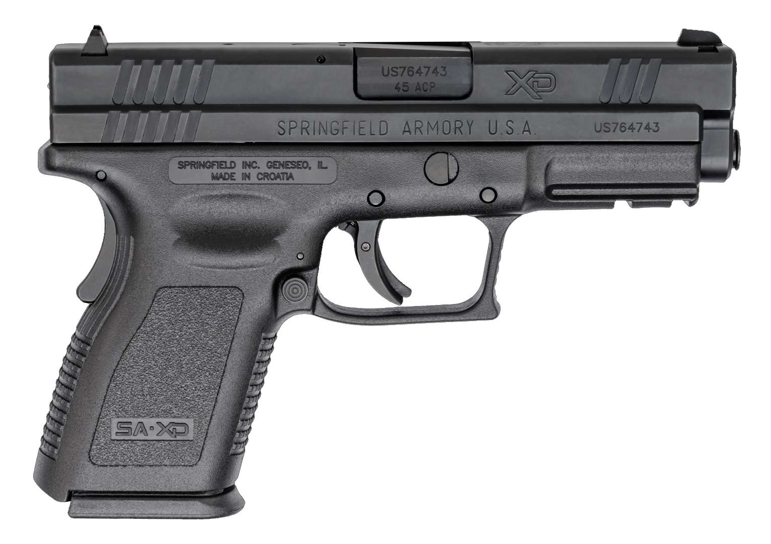 The XD Compact brings superior ergonomics a reliable performance that make the XD easy and intuitive to use in a slightly abbreviated big-bore (.45 ACP) package for uncompromising firepower. The striker status indicator, loaded chamber indicator, grip safety, Ultra Safety Assurance (USA) Action Trigger System, and internal firing pin block bring security and usability. This model has a black polymer grip/frame and a black Melonite slide. It is CA-compliant and comes with two 10-round stainless steel magazines.