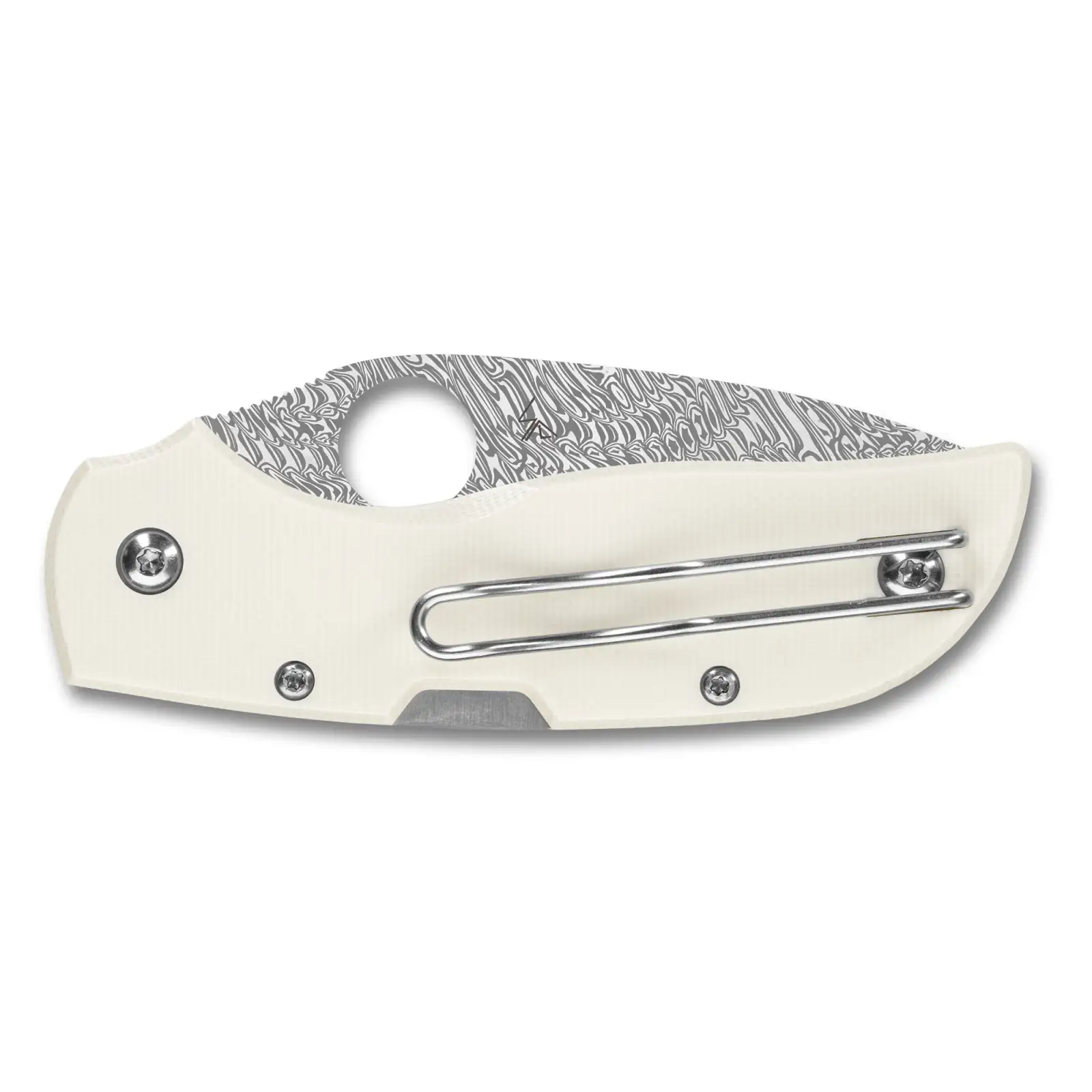 Spyderco Chaparral, Folding Knife, 2.8" Drop Point Blade, 6.4" Overall Length, Damasteel DS93X Grabak Blade Steel, Plain Edge, Damascus Finish, Silver, White G-10 Handle, Back Lock C152GPIVD