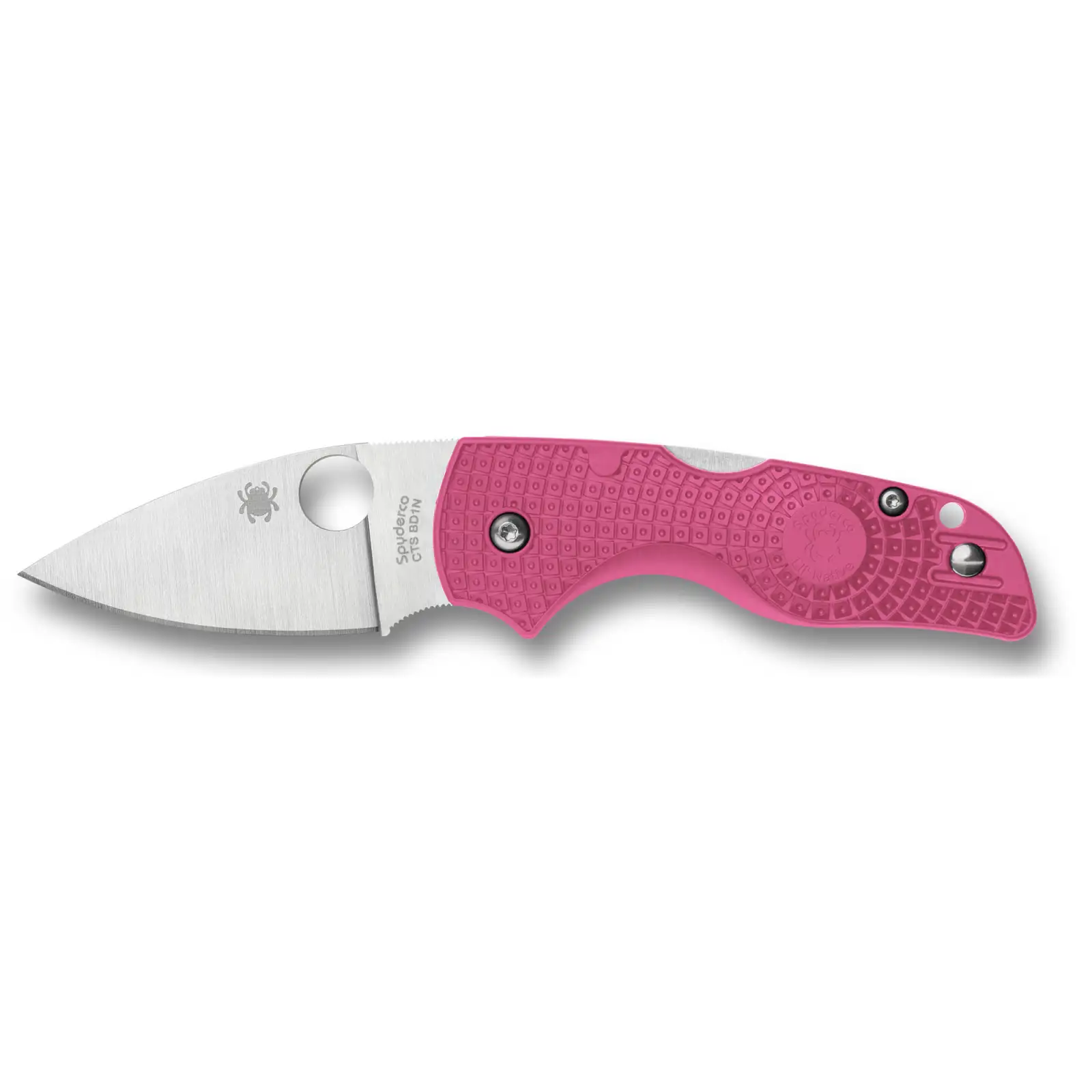 Spyderco Lil Native Lightweight, Folding Knife, 2.42" Drop Point Blade, 5.9" Overall Length, CTS BD1N Blade Steel, Plain Edge, Satin Finish, Silver, Pink FRN Handle, Back Lock C230PPN