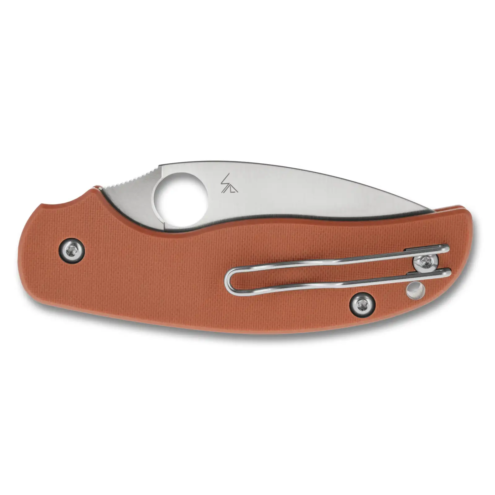 Spyderco Sage 6, Folding Knife, 3" Drop Point Blade, 7.13" Overall Length, CPM REX 121 Blade Steel, Plain Edge, Satin Finish, Silver, Burnt Orange G-10 Handle, Button Release Compression Lock C123GPBOR