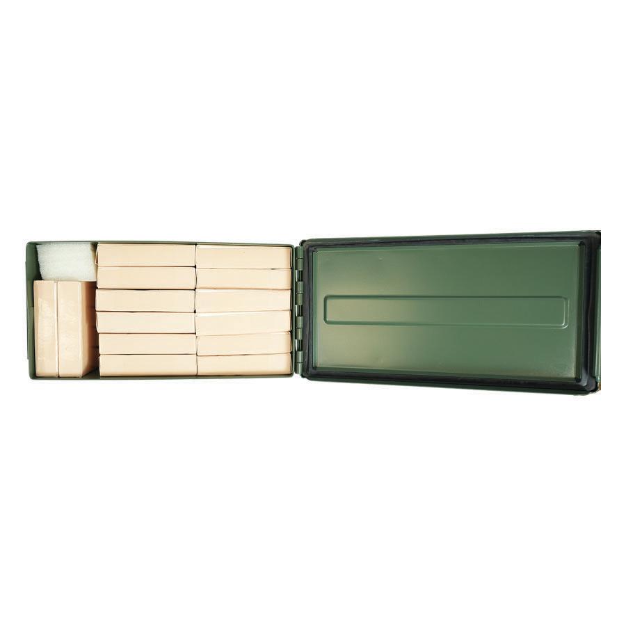 Comes with packed in an ammo can with 800 rounds in 40 boxes. These are M855/SS109 cartridges but the tips are not painted green.
