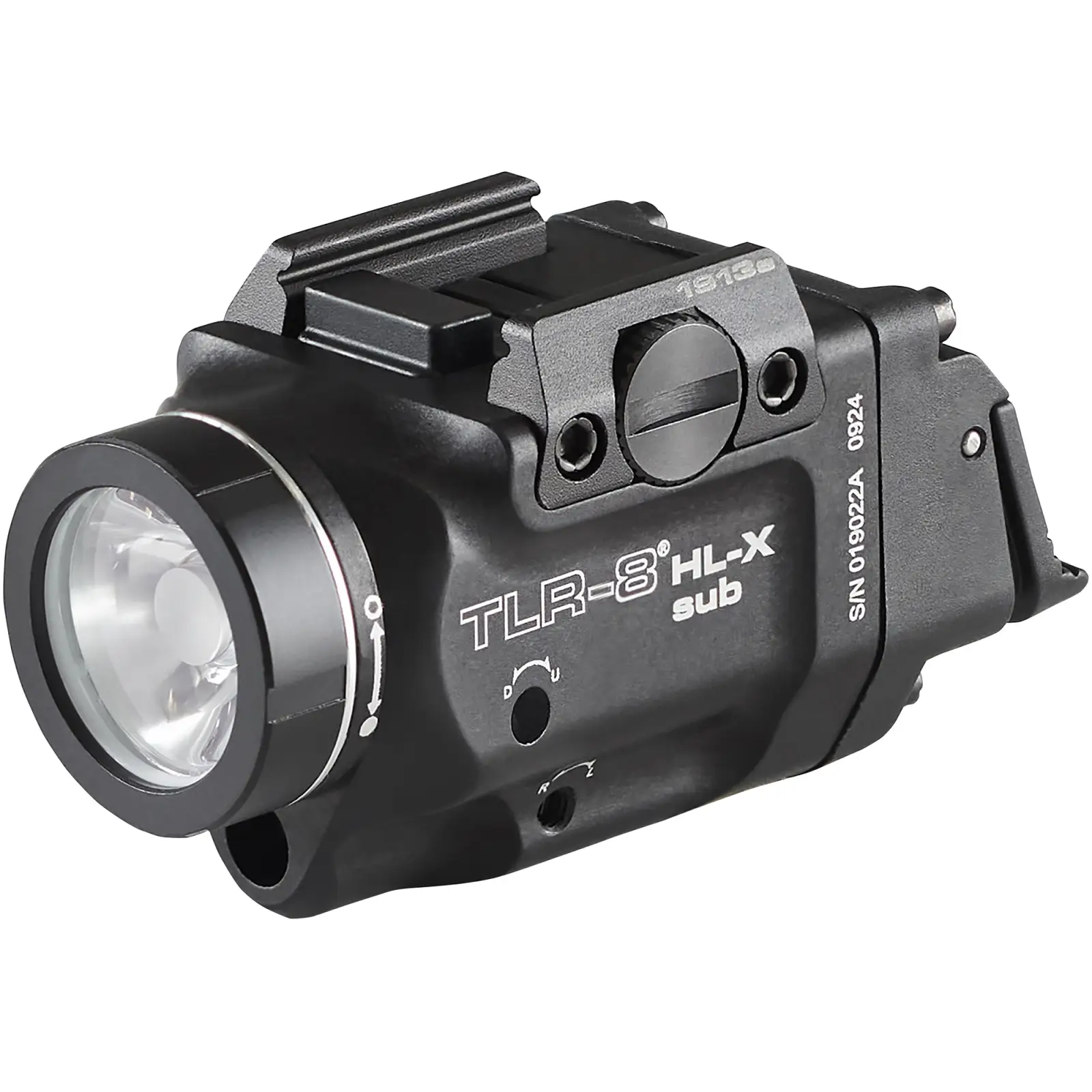 The TLR-8 HL-X sub high-lumen, rail-mounted light is engineered to produce a longer reaching beam. It accepts either Streamlight's SL-B9 USB-C rechargeable protected lithium-ion battery pack or a single CR123A lithium battery. Interchangeable rear paddle switches accommodate your shooting style.