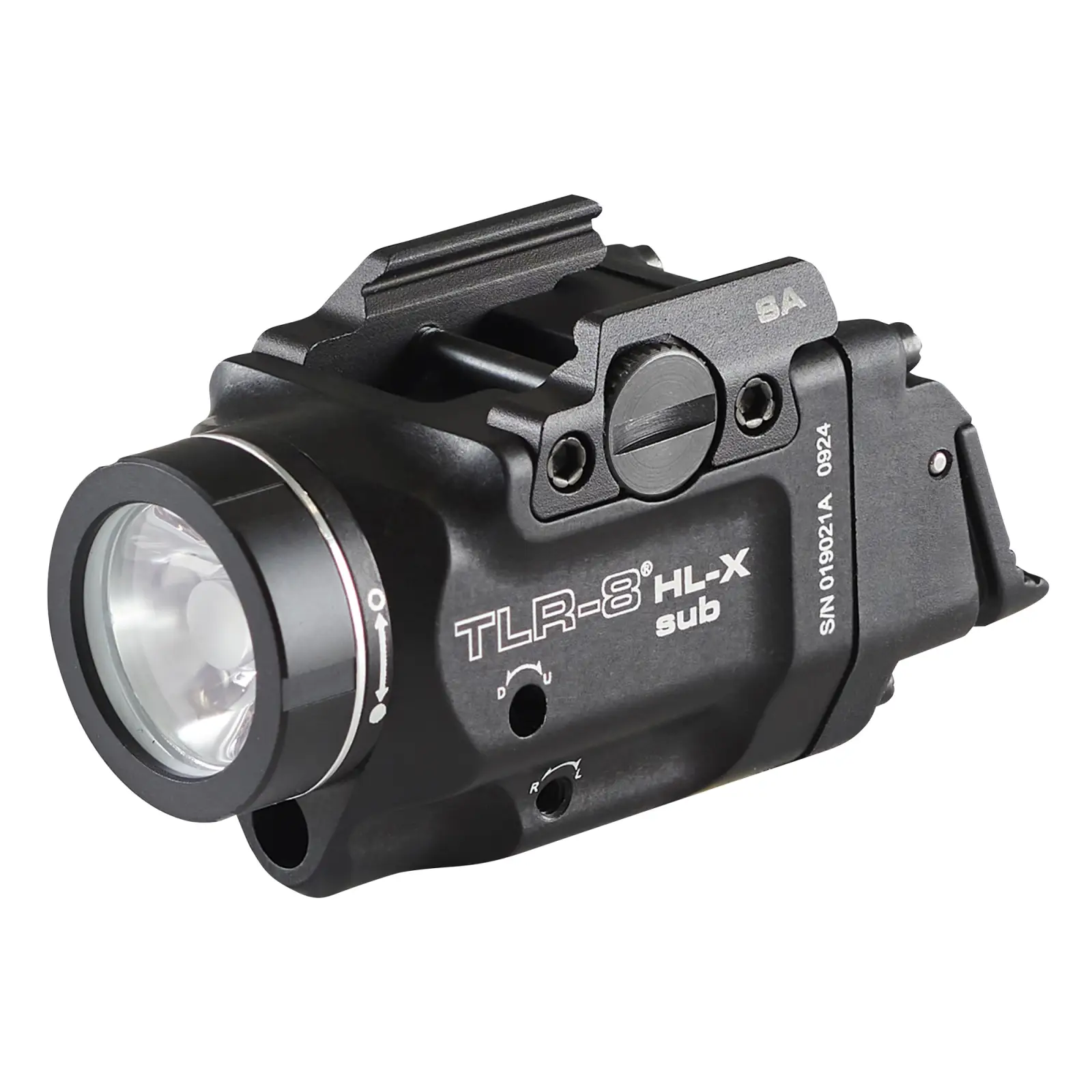 The TLR-8 HL-X sub high-lumen, rail-mounted light is engineered to produce a longer reaching beam. It accepts either Streamlight's SL-B9 USB-C rechargeable protected lithium-ion battery pack or a single CR123A lithium battery. Interchangeable rear paddle switches accommodate your shooting style.