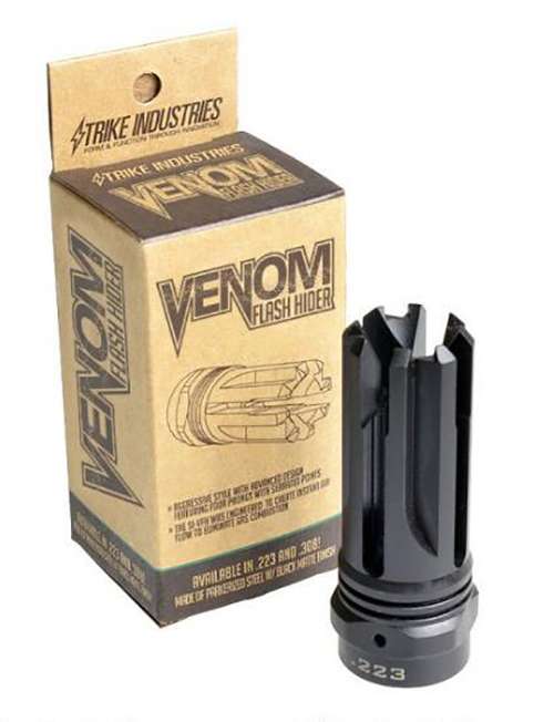 The Venom Flash Hider nearly eliminates 100 percent of your muzzle flash and quickly disperses the burning gases exploding from the barrel. The four prongs on the end of the brake are designed to protect the muzzle crown.