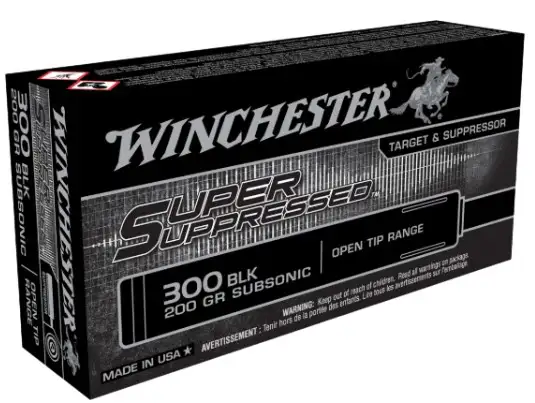 Winchester Ammunition, MFG# SUP300BLK2, UPC: 020892030503, UOM: EA, Supre Suppressed, .300 BLK, 200 Grain, FMJOT, Subsonic, 125/Box, WINC, WINCAM30, WINCAMALL, AM30, AMALL, Case:10