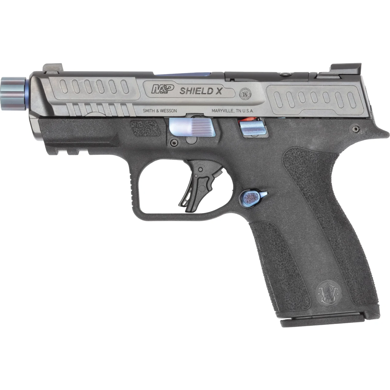 The Performance Center® M&P® Shield X™ – Davidson’s® Exclusive elevates the Shield platform with a threaded Performance Center barrel and refined slide design, giving shooters greater flexibility and customization beyond standard models. Featuring an optic‑ready slide, enhanced ergonomics, and Performance Center upgrades throughout, the Shield X balances shootability, capacity, and concealability in a slim, striker‑fired package. Purpose‑built and adaptable, it delivers confident performance across a wide range of applications.