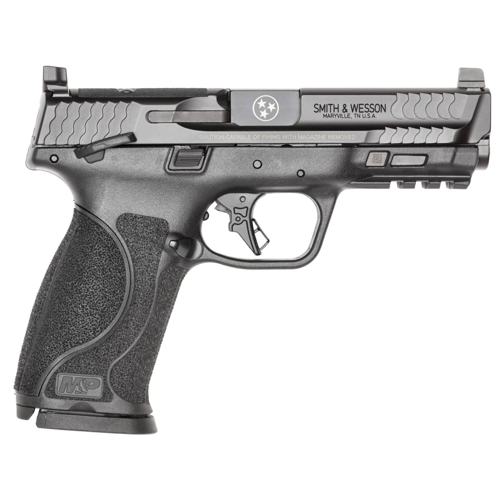 Smith & Wesson M&P9 M2.0, Striker Fired, Semi-automatic, Polymer Frame Pistol, Full Size, 9MM, 4.25" Barrel, Armonite Finish, Tennessee Special Logo, Optic Height Sights, Thumb Safety, 17 Rounds, 2 Magazines 14122