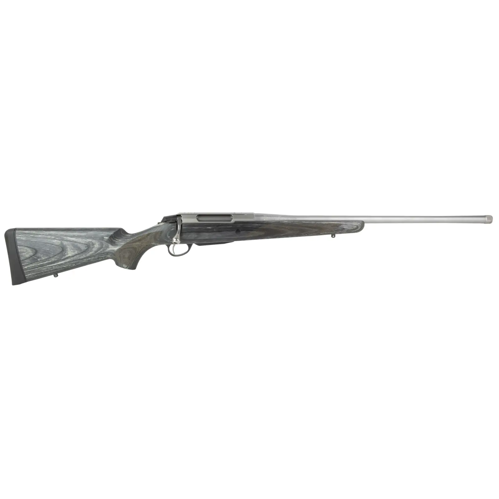 Laminated stainless steel looks like a piece of art built for all weather. This rifle definitely stands out from the crowd. The free-floating stainless steel cold-forged barrel and the stainless steel lock frame, bolt, and crank can withstand harsh weather conditions. Laminate keeps its shape without warping and is easier to maintain than a traditional wooden stock.