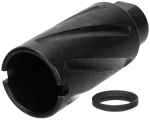 This 1-piece Krinkov style muzzle brake is made of an all steel construction with a heat treated, erosion resistant, black oxide finish. It comes with a 1/2"x36 thread pitch, and is designed to reduce recoil along with barrel whip.