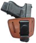 This very versatile holster, can be worn inside the waistband or on the belt. It is doubled stitched for strength and durability. Leather lined for added protection of your gun. The belt slots fit up to 1 1/4" wide.