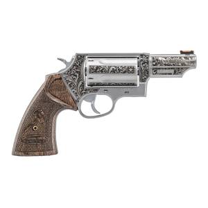 Taurus USA Judge 20th Anniversary, Revolver, Double/Single Action, Medium Frame, 45 Colt/.410 Gauge, 3" Barrel, Engraved Matte Stainless Finish, Silver, Walnut Grips, Fiber Optic Front with Fixed Rear Sights, 5 Rounds 2-441039T-20YR