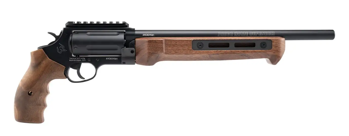 Taurus USA Judge Home Defender, Double/Single Action, Medium Frame, 45 Colt/.410 Gauge, 13" Barrel, Matte Finish, Black, Wood Grips, Picatinny Rail Rear Sight, 5 Rounds 2-JHD441013MAG-W