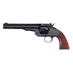 Taylor's hand gun line are replicas copying the original designs, but built with today's high quality standards in mind. The Schofield model was designed to be operated with one hand while on horseback making it ideal for soldiers in the U.S. Cavalry. The break-open pistol's barrel latch opens by pulling it back and has a rear sight notch incorporated into it. This 38SP model has a 7" barrel, blued metal finish, walnut grip, and a fixed blade front sight.