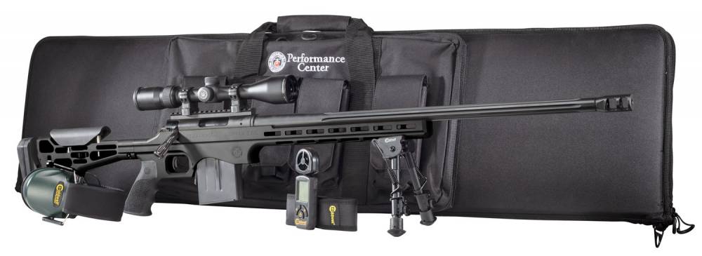 The Performance Center T/C LRR Bundle Kit includes the LRR in 6.5 Creedmoor, Vortex Diamondback 4-12x40 Variable Power Scope, Caldwell Cross Wind Professional Wind Meter, Caldwell hearing protection, Caldwell bipod and a padded carry bag. The kit features the LRR chambered in 6.5 Creedmoor with a 5R rifled, fluted barrel with muzzle brake for enhanced accuracy; adjustable cheek piece and butt plate; built-in Magpul M-LOK slots for quick, easy mounting of accessories, aluminum chassis stock with Cerakote coating and a Performance Center trigger that's adjustable from 2.5 to 3.5 pounds for precise tuning. Vortex Diamondback Riflescope 4-12 x 40mm Dead-Hold BDC Reticle. Caldwell Cross Wind Professional Wind Meter with a data hold features- wind speed measured in mph, ft/min, km/h, m/s or knots. Measures max wind gust, average wind speed and current wind speed. Anemometer head rotates 90 degrees measures/calculates temperature, station pressure, barometric pressure,altitude, density alt and wind chill. Caldwell E-Max low profile electronic hearing protection- 23 NRR, dual microphones, adjustable volume control, amplify sounds below 85 decibels and sounds above 85 decibels, the microphones shut off, audio input jack and true stereo amplification. Caldwell XLA lightweight bipod attaches with a sling swivel stud, adjustable legs spring into action with the touch of the button, soft rubber feet for stability. Padded Case stores your rifle and scope inside and your accessories in the outside pockets.