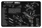 The Tekmat Ruger LCP gun cleaning mat measures 11 x 17 and is 1/8 thick. The over-sized design gives you plenty of room to disassemble your handgun and to clean it without having to move parts all over. This mat comes with an overview of the history of the Ruger LCP as well as a simple to follow parts diagram of the parts that make up your Ruger.