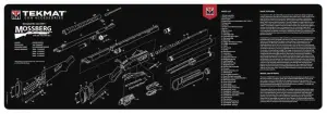 The Tekmat Mossberg shotgun cleaning mat measures 12 x 36 and is 1/8 thick. The over-sized design gives you plenty of room to disassemble your firearm and to clean it without having to move parts all over. This mat comes with an overview of the history of the Mossberg shotgun as well as a simple to follow parts diagram that makes up your Mossberg.